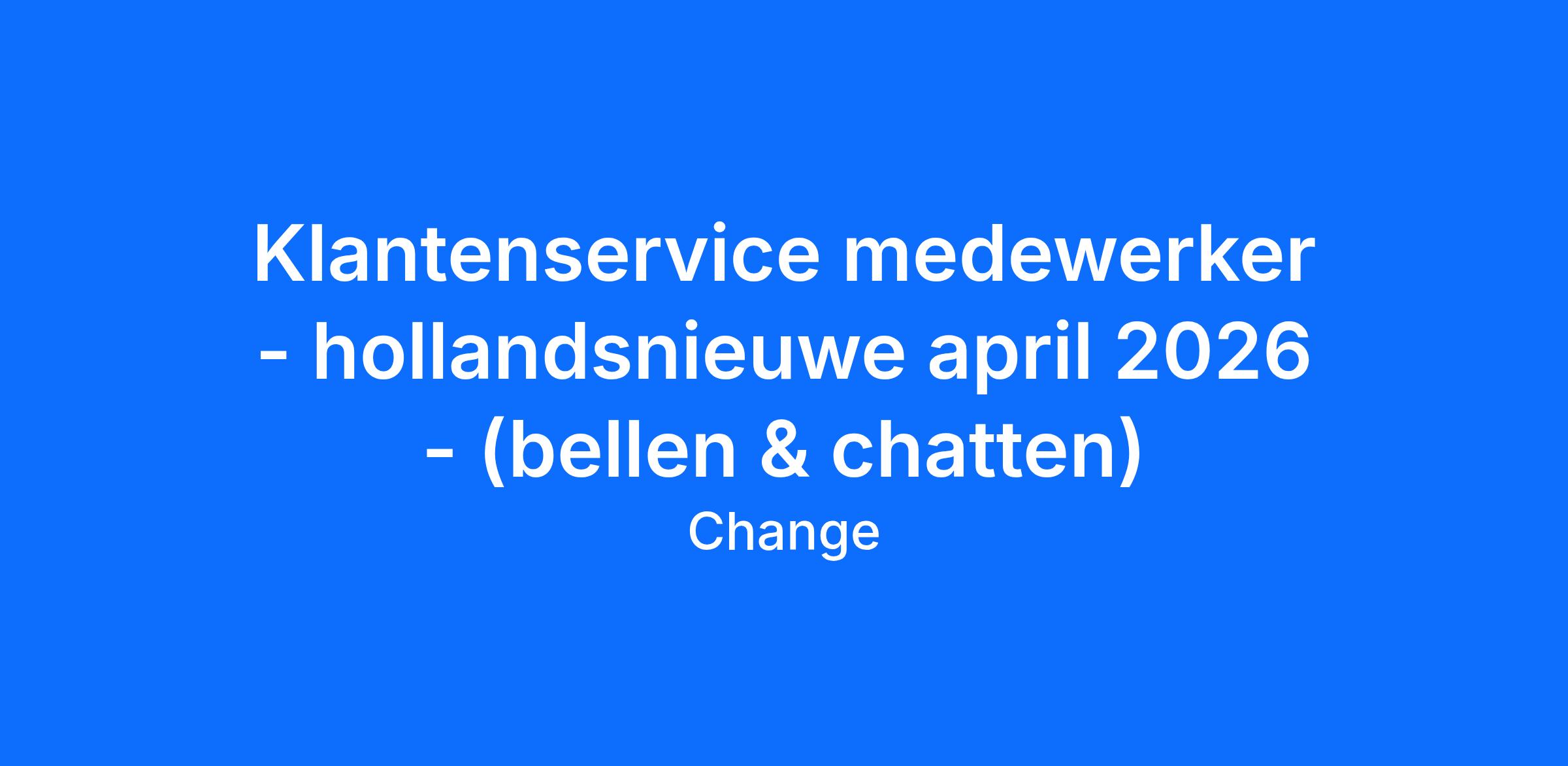 Bij Change, dé specialist in Customer Experience! Samen met jouw enthousiaste collega’s werk je aan het verbeteren van de klantbeleving voor hollandsnieuwe. Dit ga je doen op onze prachtige locatie Utrecht, in het Newton House aan de Newtonlaan. Wij geloven in een hecht team waarin iedereen het beste uit zichzelf en elkaar haalt.